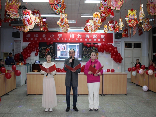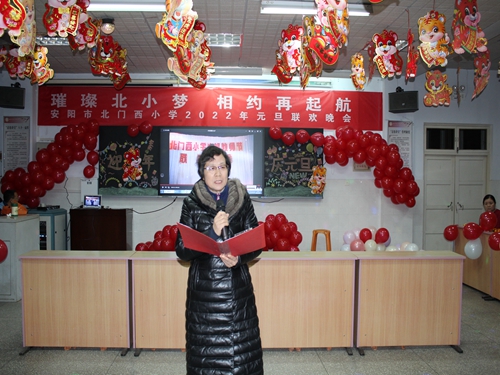 安阳市北门西小学元旦联欢晚会时间:2022-01-05 12月31日,安阳市北门西小学合堂教室开展了2022年“璀璨北小梦,相约再启航”庆元旦联欢晚会。 苏海华校长代表学校领导班子向辛勤耕耘在教学前线的教师们致以新年的问候: 在这一年里,我们的老师对待工作干劲十足、兢兢业业。这一年,我们用责任与使命,探索科学的教学之路;这一年,我们用智慧和汗水,展现学校全体师生的形象;这一年,我们用真诚和关怀,构建家校和谐的桥梁;一元复始,万象更新。在这辞旧迎新、继往开来的特殊时刻,感谢大家一年的付出,你们辛苦了! 时光从日历上一页页飘落下来,我们又来到了岁末年尾。牛年悄然而去,虎年款款而来,过去的一年,我们汗水浇灌收获喜悦。新的一年,我们温馨和谐,放飞希望。 在欢乐声和祝福声中,安阳市北门西小学所有教师们迎来了新的一年,也为北门西小学教育工作开启了新的篇章。在新的一年,每一位教师都要牢记使命,不忘初心,继续为北小教育事业贡献一份力量,北小的明天一定会更好! |