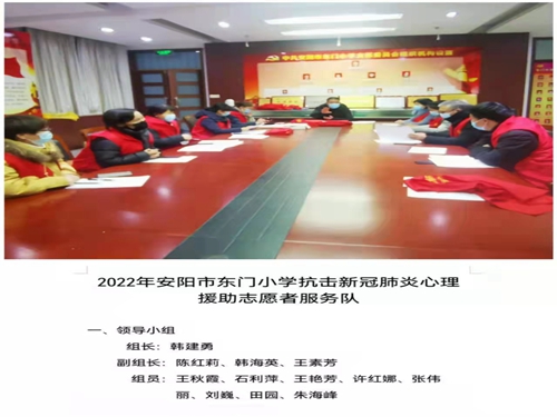 安阳市东门小学抗疫心理援助志愿服务队行动时间:2022-01-13 新冠无情人有情,为更好地向疫情中的学生提供心理疏导服务,1月9日,安阳市东门小学成立了抗疫心理援助志愿队。 学校在第一时间成立了领导小组,制定心理援助服务方案,并成立了由具有专业心理辅导资格资质的心理教师和经验丰富的班主任老师组成的心理援助服务队。经领导小组研究决定,确定了心理援助服务方案,公布了服务对象为全体师生及家长朋友;服务时间为全天候服务。 老师们还制定了心理援助措施:开展心理疏导宣传工作。通过电话、微信等通讯方式有针对性地指导学生,进行心理疏导,发放心理调适相关知识,如心理减压游戏、情绪调节方法、亲子沟通方法,消除紧张情绪。开展多种样式的集体心理辅导活动。如:班主任通过班级微信向学生科普相关心理知识;对学生及家长进行健康理念和传染病防控知识宣传,增强自我防护意识和能力;教育学生养成讲文明、讲卫生、讲科学的健康生活方式。引导学生严格遵守疫情防控规定,自觉“宅”在家,截断病毒传播的途径;倡导学生及家长不信谣、不传谣,保持积极乐观、理性平和的良好心态,坚定战胜疫情的信心。 疫情居家期间,教师鼓励学生和家长进行一些简单易做的活动进行自我调解:制定一个计划、 钻研一件事情、沟通寻找支持、进行一项锻炼、思考亲身体验。只要保持心理和身体健康,齐心协力,众志成城,携起手来共同抗疫,胜利终将是属于我们! |