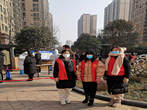 1月14日,安阳市文惠小学华富世家志愿者服务的老师逆风而行,协助抗疫。