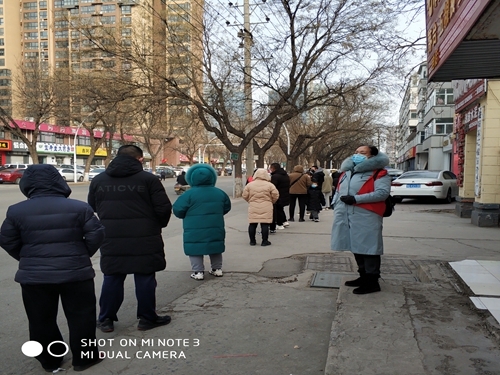在疫情面前,老师认真地维持队伍秩序、指导大家保持安全距离、佩戴好口罩、做好个人防护。由于系统问题,志愿者老师耐心地向居民解释,劝导排队的市民等待系统恢复,正常使用了,又立即输入手写的采集者信息。
