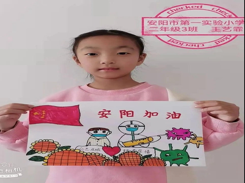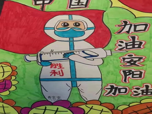 学生通过绘画、录视频、书信等方式,告诉隔离点的孩子们:面对无情的病毒,面对这场没有硝烟的战争,大家不是一人孤军奋战,国家在战斗,我们的城市在战斗,安阳市第一实验小学全体师生们也和大家一起并肩战斗。