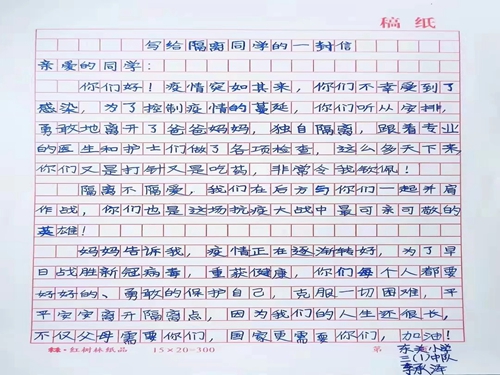 安阳市东关小学开展疫情无情我有爱主题活动时间:2022-01-15 近日,受此轮新冠肺炎疫情影响,汤阴县育才学校4000余名师生被陆续转移至安阳学院、安阳职业技术学院和安阳幼儿师范高等专科学校3个集中医学观察点。 为进一步做好疫情隔离期师生们的心理疏导工作,用特别的方式向隔离区师生表达关心与慰问,市教育局发起“疫情无情我有爱,我们和你在一起”主题关爱活动,1月15日,安阳市东关小学积极响应号召,组织学生开展了为隔离区学生送温暖活动。 学生以绘画、小卡片、书信、视频等形式对隔离区学生表达祝福、期盼、鼓励。一张信纸,一支笔,朴素的语言,真挚的情感,写出了他们对隔离区师生浓浓的牵挂。 “岂曰无衣,与子同袍,我们的心永远在一起。隔离区的小朋友、大朋友们,我们永远是你们坚强的后盾”。学生纷纷用最真挚的语言向隔离区的师生送去祝福和鼓励。 学生拿起手中的画笔,画出了对隔离区师生们的祝福,画出了对逆行者的敬佩。学生用艺术的语言表达自已眼中所看,心中所想,他们画出了对防控的决心和对安阳必胜,河南必胜,中国必胜的决心。 |