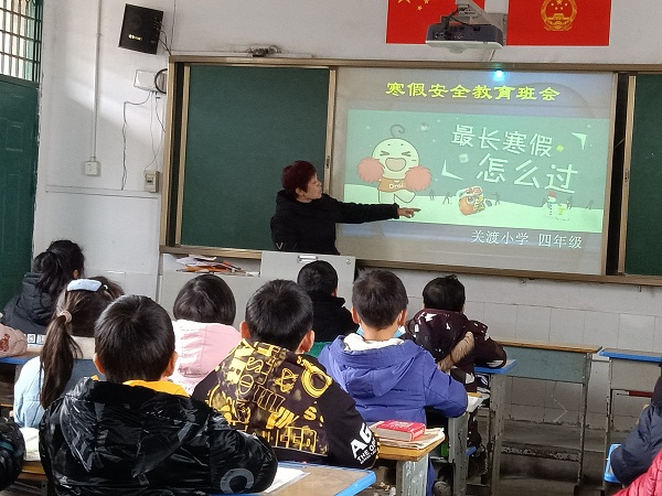 教育文摘周报1月15日四川讯 为指导孩子度过一个平安、健康、充实、愉快而有意义的寒假,进一步培养学生安全意识和自我保护能力, 近日,四川省巴中市巴州区关渡小学各班级认真开展了寒假前“安全教育最后一课”教学活动 。