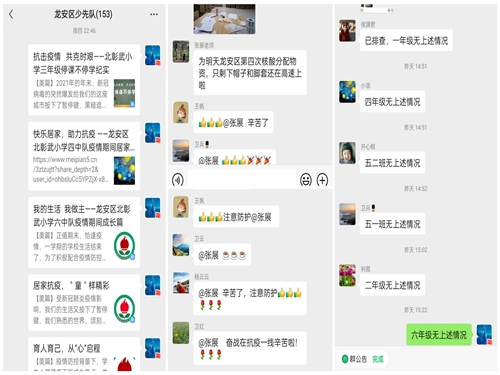龙安区北彰武小学凝心聚力加强疫情防控工作时间:2022-01-16 1月8日,安阳市疫情突然反弹,形势骤然紧张,全市按下暂停键。面对疫情“大考”,龙安区北彰武小学全体教职工在学校党委书记兼校长常征同志的带领下,扛稳政治责任,第一时间响应、第一时间筹划,不遗余力,众志成城汇聚全校师生力量,共同画出了北小抗疫最大“同心圆”。 为保证疫情信息无疏漏,学校安全员疫情排查细致到位,每天做好各班级外出务工学生家长返乡统计、师生体温量报统计、师生及家长核酸检测次数统计、随时发布疫情最新排查消息、排查校园值班值守等工作。各班主任也是随时关注工作群消息配合各项通知、统计与排查工作。 为保证学生疫情期间身心健康,学校大队部开展了系列居家抗击疫情主题活动,鼓励学生居家健康生活和学习。学生通过自制小视频、绘画、表演等形式开展疫情防控知识宣传,并上传在班级群、朋友圈中,让更多家长和同学一起学习、宣传疫情防控知识。各中队还通过发放电子版《致家长学生的一封信》、编发防疫小视频与美篇等方式,持续深入开展面向全体学生与家长的防控知识宣传。 常校长带领所有教职工积极配合参与疫情防控中心的流调工作,常校长强调:疫情就是命令,防控就是责任。大家应当以大局为重,先国后家,先公后私,除了参与疫情指挥部工作的志愿者教师外,要求所有教职工,每天除了关注班级学生学习和心理健康辅导外,要随时待命配合上级疫情防控部门的流调等防疫工作。 教师表示:面对疫情,将尽最大力量做到万无一失。众人拾柴火焰高,齐心抗疫必能胜。 |