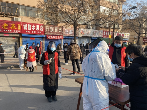 1月16日,全员第八轮核酸检测,形势更加严峻。接到通知,志愿者们顾不上吃饭,义无反顾,奔赴战场,早上7时前,全部离家到岗。