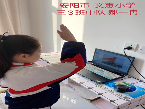 安阳市文惠小学线上升旗仪式时间:2022-01-17 1月17日,安阳市文惠小学组织举行了“强国有我,抗疫有我”的线上升旗仪式,通过这样一次特殊又别开生面的升旗仪式,唤起队员们的家国情怀,引领少先队员们在疫情中进行精神洗礼。 此次升旗仪式,没有宽阔的操场,没有熟悉的老师和同学在身旁,学生依旧穿好校服,戴上红领巾,笔直地站在屏幕前。当国歌从电视、手机、电脑里传来,少先队员们向鲜艳的五星红旗肃立、敬礼,用最朴素的方式向伟大祖国表达热爱之情,就这样在特别的“家庭教室”里完成了简约而庄重的升旗仪式。 文惠小学六年级一班崔雨婕在参加完升旗仪式后说:“ 相信我们在伟大精神的指引下,同心同向,知难而上,一定能用安阳速度,拼起新的奇迹,打赢这场疫情阻击战。” |