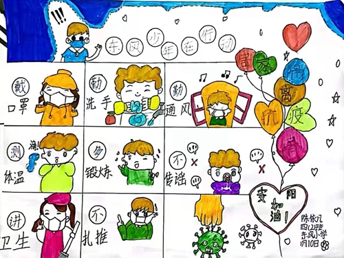 学生从不同角度介绍了新冠肺炎的防控知识以及个人感受,提高对疫情的正确认识,筑起坚强的心灵防疫线,并向大家做好抗疫宣传。用文字和绘画表达对抗疫一线工作人员的感激和敬佩之情,表达出对抗击疫情的必胜信心。