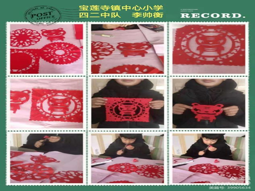 活动中,学生挽起袖子和家人一起蒸花糕,蒸的花糕也有模有样,学生还发挥想象,一张张彩纸,在学生灵巧的小手中,一折、一叠、一剪,经过精心构思的窗花在手下飞舞,带着美好的愿望,演绎着中国灿烂辉煌的传统文化。