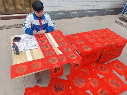 在古老的春节文化里,祝福是永不褪色的文化自信,人们会用各种各样的形式来庆祝春节。赵张村小学的学生用蒸花糕、写对联、剪窗花来喜迎春节,期盼疫情快快过去,表达着迎禧接福、祈求丰年、祝愿健康平安的美好心愿。