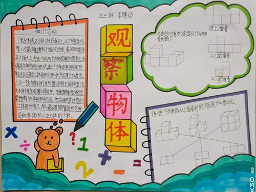 安阳市东门小学数学实践活动时间:2022-01-31 1月30日,安阳市东门小学五年级数学老师组织学生开展实践活动,活动内容为观察物体。 学生动手操作,通过亲身体验知识的形成过程,深化对概念的理解。他们从体验感悟新知,并及时把所理解的知识内容记录下来,办成了自己的数学小报。 学生发表了很多不同的收获:发现观察者所占的位置不同,看到的物体形状就不同。站在任何一个位置都不能看见一个物体的所有面。一个小正方体最少能看到一个面,最多只能看到三个面。不同的立体图形有时候从同一角度观察,看到的图形可能是相同的。从一两个方向得到的平面图形无法准确确定立体图形的形状,要真正知道这个图形究竟是什么样的,要从多个角度进行观察。从物体的右面观察看到的不一定和从左面看到的形状完全相同。 通过活动,培养了学生自主学习的能力,学生学会了预习的方法,提高了学习数学的兴趣。 |