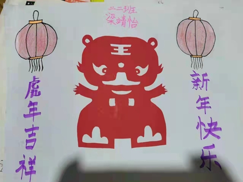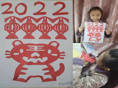 从学生发来的照片上,可以看出他们兴趣高涨。在剪纸方法中,中心对称剪法是最常见的一种剪法,但最简单的、对于初学者而言有着重要意义的剪法却是左右对称剪法。学生利用学过的数学知识进行裁剪,剪出了各式各样美丽的窗花。