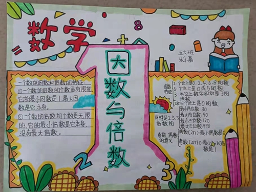 学生了解到因数与倍数是一个集体的称呼,它们是相辅相成、相互依存的。他们动手查阅资料进行整理,独立思考、进行小结,最终以手抄报的形式展示出来,作品精彩纷呈。