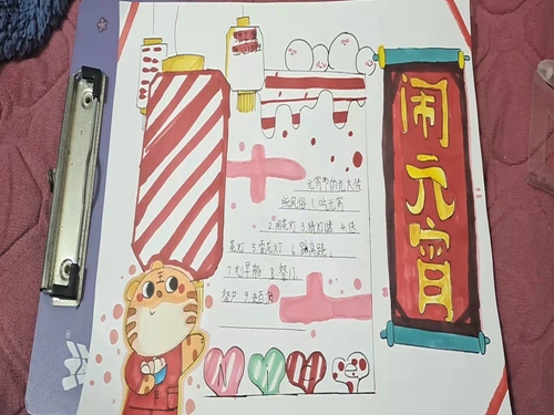 学生在了解过元宵节的传统习俗后,用一幅幅手抄报表达了自己对传统佳节的喜爱。