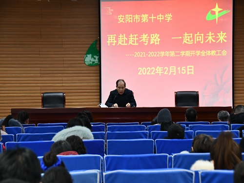 安阳市第十中学召开全体教职工大会时间:2022-02-17 为全面部署新学期开学工作,2月15日,安阳市十中在学术报告厅召开全体教工大会,正式拉响新学期的奋进号角。 支部书记闫金堂同志总结了学校2021年各项工作开展情况,肯定了老师们的工作与付出,同时梳理了学校目前的短板与不足。他强调,国家“双减”政策已然落地,站在新的起点上,扎实推进“五项管理”、减负提质需要老师们更加专业。疫情之下,更需要大家有“逢山开路,遇水搭桥”的气魄,在变化中坚守育人初心,敢于克难攻坚,共同推进学校教育教学高质量发展。 闫书记就开学前工作提出三方面要求:精心谋划,周密部署,做好表率;突出重点,明确措施,真抓实干;提振精神,调优状态,务实作风。特别强调要保障师生安全、落实防疫常态化等问题,确保新学期开学井然有序。 下午,各年级分别召开年级组会议,就开学前安全教育、疫情防控、错时错峰开学、教学教研、常规管理等具体工作进行安排,明确责任分工,夯实岗位责任。 |
