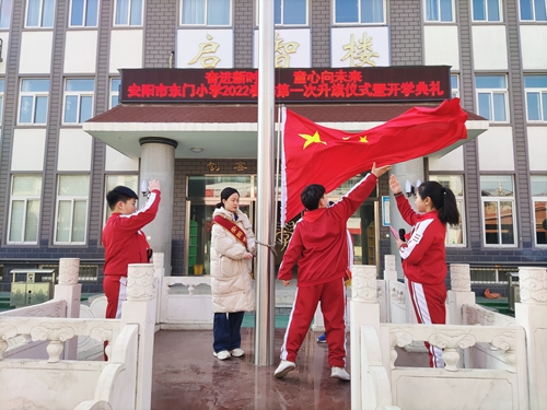 安阳市东门小学春季第一次升旗仪式暨开学典礼时间:2022-02-21 2月21日,开学第一天,安阳市东门小学隆重举行了开学典礼暨第一周升旗仪式。 本次升旗仪式别开生面,校园广播、网络多媒体齐上阵,线上线下无缝衔接。师生代表保持一米距离分散肃立,在校园参加升旗仪式,其余师生在各班教室以观看群直播的形式参加升旗仪式。两个校区升旗仪式分别由五五和六三中队主持。 “启事在教诲,成事在榜样。”新学期的第一任旗手,张伟山和杨玺锟老师是学校“优秀抗疫志愿者”的代表,学生代表五五班的郑镐辰和六八班朱浩天同学在社区抗疫中表现突出。五五中队、六三中队全体队员激情朗诵《奋进新时代,童心向未来》。 同学们身穿校服,一起感受这期盼许久的时刻。当激昂的国歌声响起,鲜艳的五星红旗徐徐升起,迎风飘扬,全体师生肃立,饱含深情的向着国旗行注目礼或队礼。不一样的升旗仪式,不变的是爱国之情。 新的学期,学校领导也为大家送上了深情寄语。陈红丽和韩海英副校长分别在两个校区进行了热情洋溢的致辞,欢迎全体师生平安返校。以再次被评为“安阳市教育教学质量优秀奖”为契机,激励全校师生再接再厉,用实际行动续写东门的新华章。 王素芳副书记具体安排做好开学“十个一”工作。要求值好第一次周、办好“雷锋精神,代代相传”为主题的第一期板报,上好第一次队课,做好第一次安全教育,展示寒假“五小活动”等。她鼓舞大家要以崭新的面貌、百倍的精神迎接新学期的到来。新学期,新篇章,大家以“更高、更快、更强、更团结”的奥运精神为激励,携手一起向未来。 |