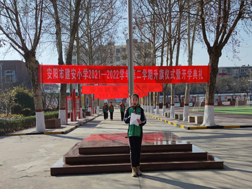 安阳市建安小学举行春季开学典礼暨第一周升旗仪式时间:2022-02-22 2月21日,安阳市建安小学举行了春季“奋进新时代,童心向未来”开学典礼暨第一周升旗仪式。 根据疫情防控要求,建安小学举行了特殊的升旗仪式。校园和室内同时进行,不一样的升旗仪式,不变的是爱国之情。 主持人陈雪燃宣布春季开学典礼暨第一周升旗仪式开始。国旗护卫队队员迈着矫健的步伐,开始了新学期的护旗使命。当激昂的国歌声响起,鲜艳的五星红旗徐徐升起,迎风飘扬,全体师生肃立,饱含深情向着国旗行注目礼或队礼。 副校长李冬明致新学期寄语,李校长希望队员们用“更快、更高、更强、更团结”的奥运精神来激励自己踔厉奋发,童心向未来。 李校长向大家提出几点期望:讲述十七岁小将苏翊鸣和十八岁“滑雪天才”谷爱凌的事迹,希望队员们养成良好的品格,让优秀品格内化为核心素养,让优秀品格为成长筑牢根基。以中国女足夺得亚洲杯冠军为契机,希望队员们逆境中不要放弃,积极行动,要像女足那样用梦想催生行动,虎年奋起龙虎精神,敢于拼搏、永不服输、永不放弃。 身为新时代的赶考人,学习、感恩、回报,强国,是队员们应该书写的时代答卷,唯有好好学习,起驾远航,方能强国。 在上级领导的支持和带领下,该校全体师生表示, 将共同努力,以虎虎生威的雄风、生龙活虎的干劲,继续书写建安新篇章。 |