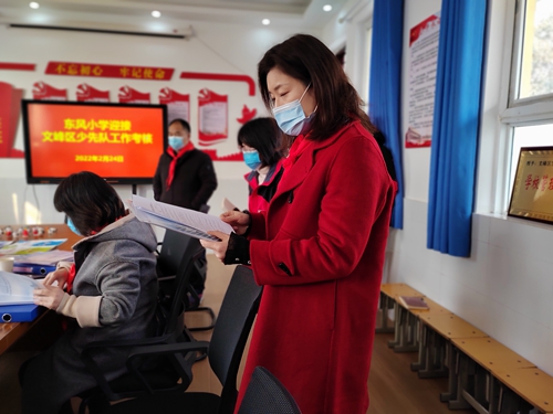 文峰区少工委到东风小学进行少先队工作考核调研时间:2022-02-24 2月24日,文峰区少工委调研组一行来到东风小学,对东风小学少先队工作进行考核指导。调研组成员包括文峰区少先队总辅导员高艺、文峰区少先队教研员常江苏、宝莲寺镇总辅导员张文叶、第一实验小学大队辅导员郭扶丽、红庙街小学大队辅导员李晓月、东门小学大队辅导员王素芳、西大街小学大队辅导员杨静和紫薇小学大队辅导员李娜。 走进校园,调研组一行驻足少先队工作风采版面前,初识东风小学少先队工作历程。调研组认真查阅了学校少先队工作的档案资料,并听取了学校党支部书记董晨毅对学校党建引领队建工作的汇报,针对少先队活动开展等工作提出了宝贵的建议。调研组实地察看了学校校园环境、少先队活动室等少先队阵地建设。对于东风小学少先队工作的开展,调研组一行给予高度认可,尤其是文件资料整理有序、齐全,同时也对学校少先队工作提出真诚的反馈。 东风小学表示,将以此次少先队工作考核为契机,将少先队常规工作规范做,特色工作创新做,纵深推进少先队改革再出发,以自我革新、只争朝夕、勇于担当的精神,努力为党和国家培养担当民族复兴大任的未来接班人。 |