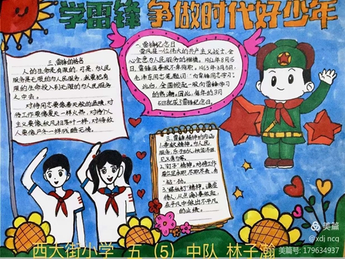 安阳市西大街小学开展学雷锋系列活动时间:2022-03-05 3月5日,安阳市西大街小学各中队在学校大队部倡导下积极开展了学雷锋系列活动。 即将入队的一年级开展了“雷锋叔叔我知道”活动,通过视频等资料,向学生讲述了雷锋叔叔的故事,告诉学生什么是“ 雷锋精神”,让学生从思想上和行动上充分理解和体验帮助别人的幸福感和自豪感。 二年级各中队开展了“学习雷锋好榜样”少先队活动课,队员们观看雷锋视频,读雷锋的日记等,进一步了解了雷锋的感人事迹,学习了雷锋精神。“雷锋”这个闪亮的名字再次走进每一位队员的心田,雷锋精神也在学生心中竖起丰碑。 三年级各中队开展了“雷锋歌曲我会唱”活动。“学习雷锋好榜样,忠于革命忠于党”一首耳熟能详的歌曲,通过队员们的演绎已展现出不同的风采,他们清脆的歌声,充满了坚定和自豪。 雷锋出差一千里,好事做了一火车,雷锋叔叔的故事多得数不清。四年级各中队开展了“雷锋故事我会讲”活动。 弘扬雷锋精神,争做新时代好队员,五年级的队员们将自己的所知所感做成了手抄报。 学雷锋更要做雷锋,六年级少先队员们化身小小志愿者清扫学校环境卫生,学做雷锋,从身边小事做起。 通过系列活动的开展,少先队员们纷纷用实际行动争做当代小雷锋。 |