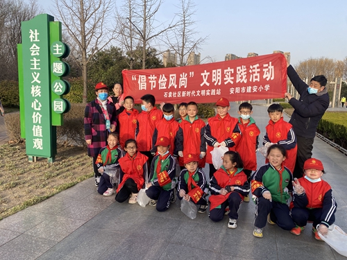 安阳市建安小学开展学雷锋系列活动时间:2022-03-09 为了弘扬雷锋精神,培育新时代的小雷锋,近日,安阳市建安小学开展了“安阳市新时代文明实践推动周”活动。 学校利用升旗仪式讲雷锋的事迹,宣传雷锋精神,号召队员们规范言行,从自己做起,让雷锋精神在校园落地生根,让雷锋精神在少年心中代代传承。各中队用精心创作的黑板报,寄托了队员们对雷锋的思念与尊敬,颂扬雷锋精神,争当时代楷模。中队会课上,队员们讲雷锋故事,唱《学习雷锋好榜样》歌曲,用动听的声音诠释雷锋精神。 “小雷锋们”投入到公园、社区和文明实践活动中,向市民发放文明宣传页,对不规范停车行为贴上爱心提醒,在实践活动中队员们发扬了雷锋不怕苦,不怕累,无私奉献的精神。 队员们纷纷表示,要学习雷锋精神,勇做新时代的奋进者、开拓者、奉献者,争做时代先锋。 |