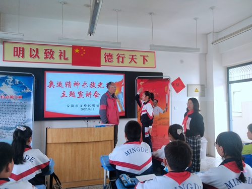 文峰区明德小学开展“奥运精神永放光芒”主题团课时间:2022-03-11 为迎接2022年北京冬残奥会的到来,落实立德树人的根本任务,3月10日,中共安阳市文峰区明德小学党支部研究决定邀请2008年北京奥运会火炬手——安阳市西大街小学俎贵常老师到学校做“奥运精神永放光芒”主题团课讲授。 俎贵常老师与五一班师生共同开展此次主题团课,他向学生讲述了他的人生经历,并对学生提出了殷切希望。 俎贵常老师从小患上了小儿麻痹症,留下了三级残疾。他为了证明不比任何人差,从小发奋学习,即使遇到困难也没有自暴自弃,而是愈挫愈勇,凭着这份勤奋和执着,考上大学并成为一名光荣的人民教师。他身残志坚,热爱运动,多次参加马拉松比赛、游泳比赛、铁人三项赛等,并获得冠军;在2010年他参加了“从万里长城到世界最高峰——珠穆朗玛峰”的登山活动,历经重重艰险,成功到达海拔5400米的珠峰大本营。 在活动现场,俎贵常老师给学生讲述了他传递北京奥运圣火的经历,向学生介绍了火炬手传递圣火的意义。同时他还给学生介绍了这次北京冬奥会与冬残奥会的比赛项目、吉祥物、火炬图样等,让学生更加了解北京冬奥会和冬残奥会。 俎老师通过讲述自己的经历,告诉学生要不怕困难,遇到挫折不要放弃,要有自强不息的信念,百折不挠的精神,和勇往直前的战斗品质。教导学生要学习奥运精神,发奋学习,将来为国家做出贡献,成为国家的栋梁之才。 |