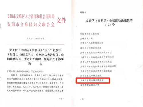 文峰区东风小学喜获区“巾帼建功先进集体”荣誉称号时间:2022-03-15 为表彰先进、发挥典型的示范引领作用,近日,安阳市文峰区人力资源和社会保障局、安阳市文峰区妇女联合会授予12个单位2021年度“巾帼建功先进集体”荣誉称号,东风小学荣列其中。该校现有教职员工39人,其中女教师有36人,占总人数的90%以上。她们坚持以习近平新时代中国特色社会主义思想和党的十九届六中全会精神为指导,立足本职岗位,踔厉奋发,向美而行,充分展示了新时代女性对社会发展的使命和担当。 一年来,东风小学关爱女教职工身心健康,通过召开“女教师座谈会”,开展“跳绳比赛”“拔河比赛”“冬至包饺子”庆“三八”妇女节教职工趣味游园等女工活动,丰富女教师生活,促进身体健康,加强组织凝聚力。女教师结合学校工作特点,积极推动以“争创巾帼文明教师、争当巾帼建功标兵”为主要内容的创先争优机制,推动各项工作深入开展。 东风小学坚持以立德树人根本任务,以“优师风、强师能、弘师德、铸师魂”为主线,发扬敬业奉献、乐业爱岗精神,在本年度学校作为防汛救灾安置点工作、疫情防控下沉社区工作、教育教学等各项工作中成绩突出,女教职工尽展巾帼风采,充分发挥了“半天边”的作用。 在东风小学教书育人工作中,女教职工立足岗位,竭诚奉献,锐意进取,取得了一项项优异成绩。现学校3名女教职为市学科带头人,5名女教职工为市骨干教师,4名女教职工为区骨干教师,这些女性骨干教师已经成为提升学校教学质量的中坚力量。目前,东风小学女教师参与省级课题2项,市级课题4项,教师参与课题研究率为100%。在2021年度东风小学积极承办了“国培计划2021”县级骨干教师少先队辅导员培训班,吸引了上百名辅导员前来观摩学习。 东风小学在学校党支部的坚强领导下,团结带领广大女职工坚持用习近平新时代中国特色社会主义思想武装头脑,坚定不移听党话、跟党走。以奋斗的姿态、改革的勇气和创新的本领,表示一定能成长美德学生,为办好人民满意教育,用不懈努力打造大美东风。 |