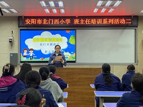 安阳市北门西小学开展班主任培训系列活动时间:2022-03-16 为进一步强化班级管理,提高班主任的工作水平,促进班主任间的交流与合作,让班主任的先进经验更好地发挥作用,3月15日,安阳市北门西小学开展了班主任培训系列活动。 此次会议由党海珍副校长主持,靳云丽和朱姗姗老师对以往的班级工作进行了回顾和总结。朱姗姗老师与大家分享了如何与家长进行沟通、充分挖掘家长资源,进行家校互动;靳云丽老师分享了班级后进生培养心得。 最后,党校长充分肯定了全体班主任在工作中所取得的成绩,勉励全体班主任继续努力,强调在班级管理方面要以人为本,班主任对学生要多一些宽容理解、多一些沟通,号召各位班主任扎扎实实做好新学期开局工作。 此次活动的召开,强化了班主任的管理意识,明确了自身的职责及努力方向,有效地促进了班主任队伍专业化水平的提高,为新学期班主任工作打下了坚实基础。 |