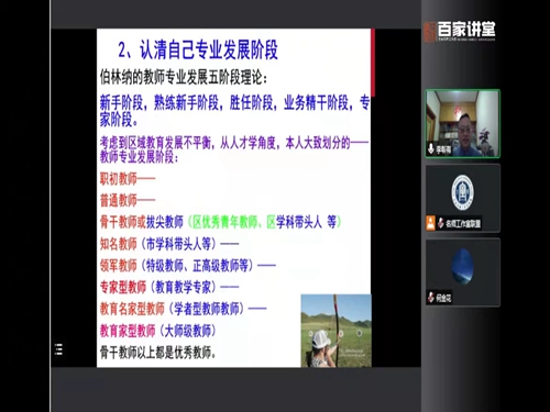 老师们相约百家讲堂,共同聆听了李彰有老师的精彩讲座,收获颇丰,感受颇深。此次线上直播培训学习,为教师们如何成为名师指明了方向,同时对专业成长的路径有了更为清晰的认识。
