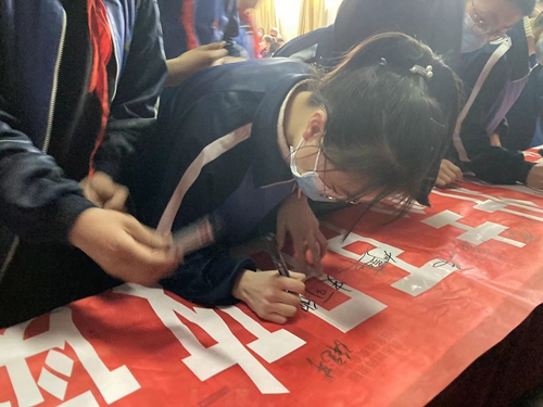 殷都区育才中学召开百日誓师大会时间:2022-03-18 3月18日,殷都育才中学隆重举行“决战中考,拼搏未来”百日誓师大会。副校长常玮致辞,拉开大会帷幕。 刘嘉栋家长带来了殷切的嘱托:中考路上,家长是你最坚实的后盾。她的发言道不尽对孩子的希望,对老师的感恩,更表达了全体毕业班家长的心声——家校齐心助力中考,聚力拼搏百日时光。 史天峰老师代表毕业班教师发言。他的诉说热忱感人:九年磨剑,六月试锋,老师时刻与你们同在,做你们前行的坚强保障。他的激励语重心长,百日会战,用汗水浇灌理想的花蕾,用行动奏响青春的乐章。 学生代表史可欣发言,回首过往,无不是挥洒汗水的日子。展望未来,白日竞渡,争分夺秒,脚踏实地,向自我挑战。 敬爱的校长梁志国发表激情洋溢、振奋人心的讲话。最后一百天,要去掉幻想,要有“行百里者半九十”的踏实心态;要有“一朝惊雷冲天起”的坚定信念;要有“毫竹积蓄半生志”的顽强意志。要在温暖的三月发芽,在火红的六月收获。校长的发言,动人心,鼓斗志,更为育才学子描摹了梦想的模样。 九年级全体教师进行宣誓:以身作则,言传身教;爱生如子,甘做人梯;严谨治学,追求卓越;齐心协力,勇创佳绩。 学生满怀激情,高举右拳,喊出百日冲刺的誓言。铮铮誓言,是圆梦青春的动员令,是扬人生志气的进军号,是展必胜豪情的奏鸣曲。 |