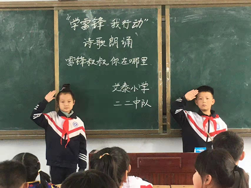 学校组织开展了“学雷锋,我行动”主题班会,通过讲故事、诗歌朗诵的方式,做雷锋事迹和雷锋精神主题演讲。利用专题手抄报,音乐课组织学生学唱雷锋歌曲童谣等一系列活动,使雷锋精神深入人心。学生在雷锋精神的感召下,也积极付诸行动,出现许多助人为乐、关爱帮扶、服务社会的感人事迹,使广大青少年感受到雷锋精神、人人可学,奉献爱心,处处可为。
