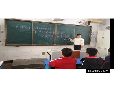 安阳市东门小学开展安全教育活动时间:2022-03-21 为进一步加强学生法治教育,严肃校规校纪,规范学生行为,促进学生身心健康。3月21日,安阳市东门小学积极开展以“共防共治学生欺凌,共建共享和谐校园”为专题的教育活动。 班队会上,各班班主任利用安阳市学校安全教育平台,播放“共防共治学生欺凌,共建共享和谐校园”视频,引导学生了解校园欺凌事件的预防知识。班主任让学生根据自己的成长经历,围绕什么是校园欺凌展开讨论;帮助学生分析“校园欺凌”产生的原因和危害,让学生远离不良的电视、网络、广播、报刊等;班主任认真讲解有关“校园欺凌”的含义,以及碰到“校园欺凌”的解决方法,同时也以此为契机,引导全体学生要互帮互助,团结友爱,不以大欺小,以强欺弱。 家长们也一起观看教育短片,和学生一起建立安全保障墙。 通过此项活动,学生知道当自己的安全受到威胁时,不能一味软弱、退让和隐瞒,要学会保护自己的方法,敢于向校园欺凌说“不”;当他人的生命遭遇困境需要帮助时,在确保自己安全的情况下,尽自己所能及时伸出援助之手。 |