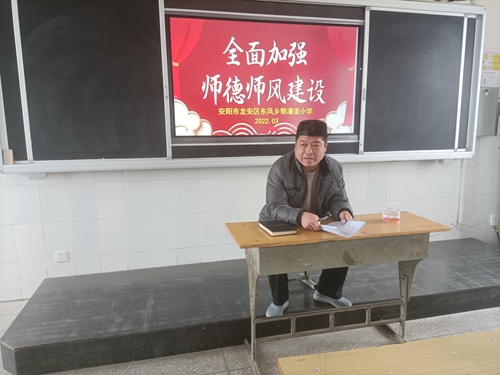 3月22日,龙安区郭潘流小学召开了加强和改进新时代师德师风建设专题会议,会议由校长赵玉堂主持。