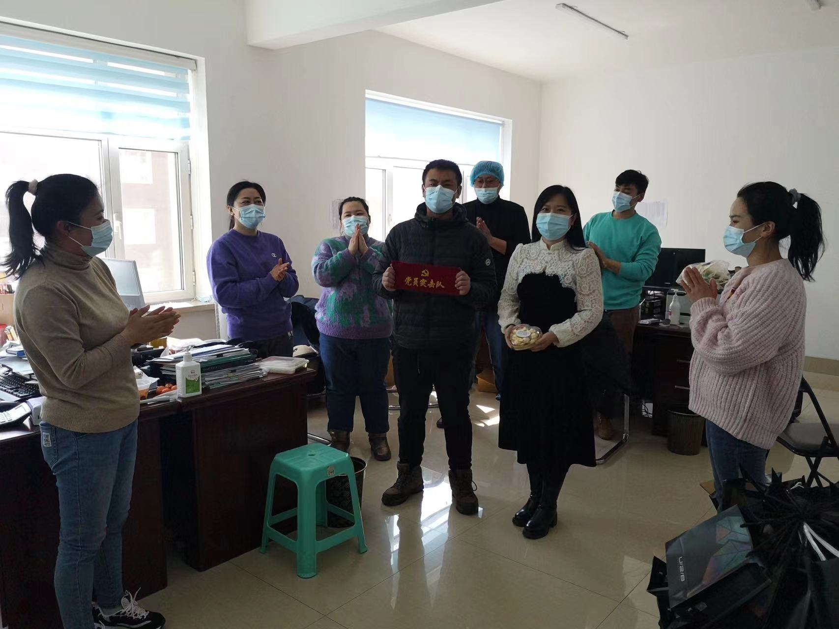 原来,这天中午时分,在一线核酸检测的一组干警回院里吃饭。期间,众人闻听青年文员李途今天过生日,大家马上忘记了疲劳七嘴八舌争抢谈论这个话题。这时,在院里正加班办案的法官冯倩恰巧路过门口,回应自已也是今天的生日,引起大家的兴致,非要在办公室给两人搞个有点仪式感的生日PARTY。有的小姐妹找出三八节时得到的巧克力礼盒装门面,大家将两人团团围在中间一起清唱起生日祝福歌。没有生日大餐,没有蛋糕,没有蜡烛,在同事们朴实无华的生日快乐歌中,他们许下了同一个愿望:希望寒冬把疫情一起带走,暖春携希望降临人间!