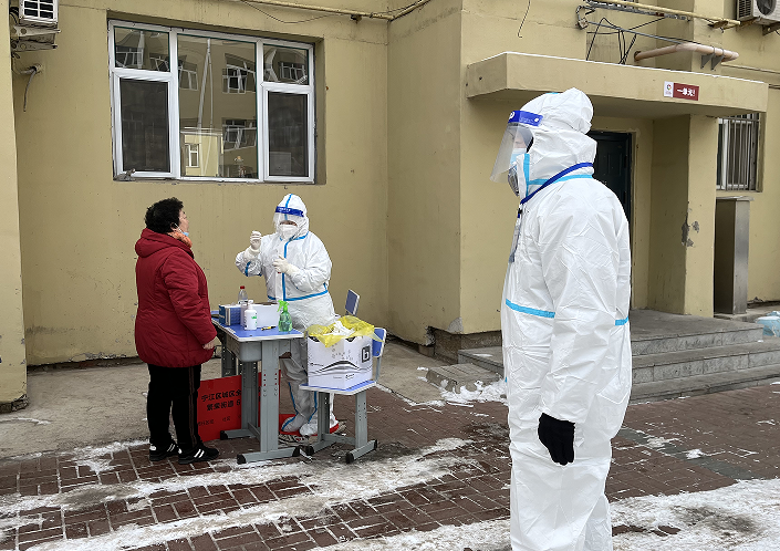 “各位居民请注意,1号楼一单元居民请下楼做核酸检测。”“您好,请准备好吉祥码……”“您好,请保持2米安全距离,谢谢配合……”“已经做完核酸检测的居民请马上离开现场,谢谢大家配合……”“大妈,不好意思,今天暂时不能外出……”3月18日至19日,松原市开展全员核酸检测,并实施严格静态管控。18日早6点,松原中院志愿者到达指定地点,协助医护人员和社区,开展准备工作,并按照既定方案:指定专人入户,敲门通知分批分次下楼进行核酸检测,楼下工作人员组织居民,按照2米距离排队等待检测,现场秩序井然,共组织2个居民小区的3000余名居民,顺利开展核酸检测工作。同时,松原中院志愿者还协助社区对2个居民小区进行封控管理,期间劝返欲外出居民10余名。