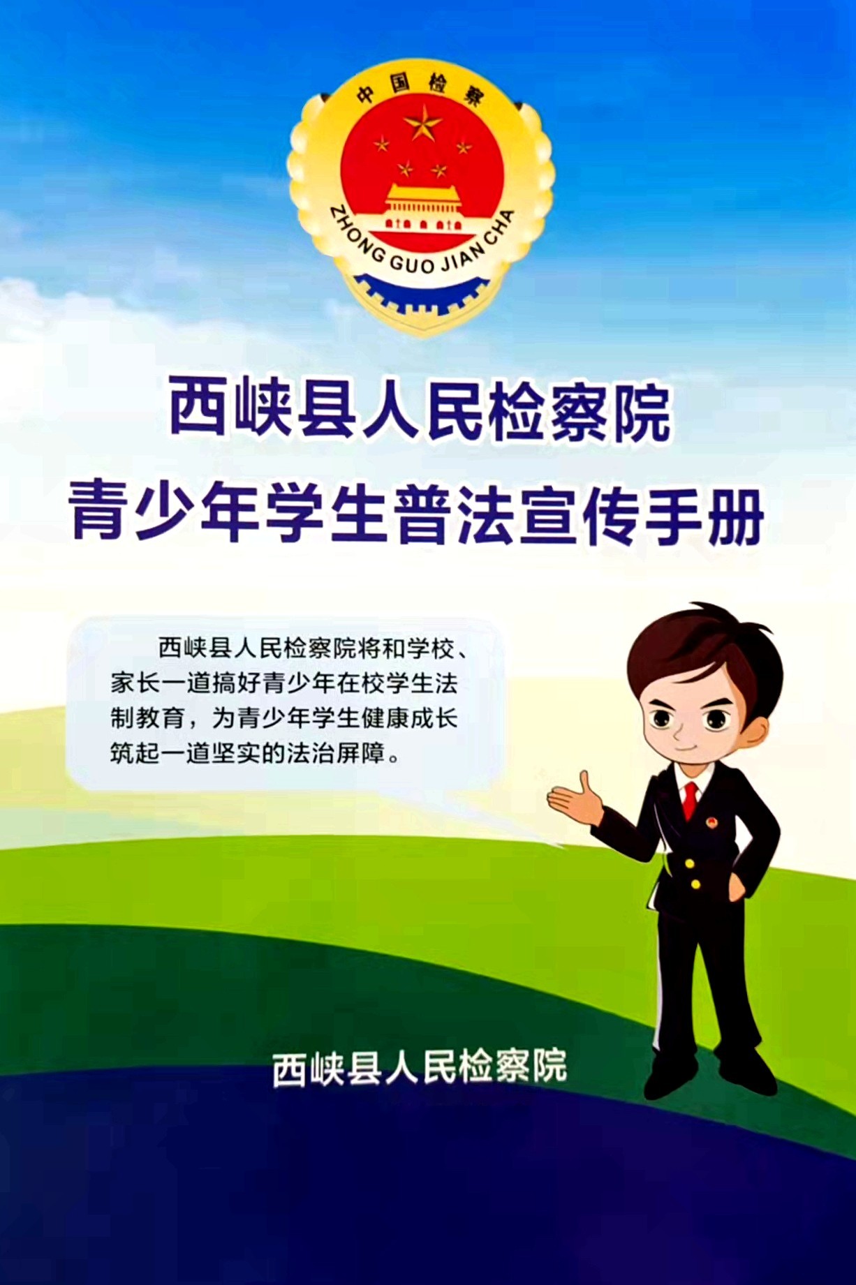 为贯彻全面依法治国方略,积极预防和减少未成年人犯罪,进一步加强未成年人法治教育,努力提高未成年人的法律素质,为国家和社会培养和造就合格人才,西峡县人民检察院按照“谁执法、谁普法”的原则,特成立未成年人法治帮扶中心,利用“三室两堂两平台”工作机制,承担起全县未成年人法治教育及其帮扶工作,致力于为全县青少年学生打造一片健康成长的法治蓝天。中心的具体职能是: