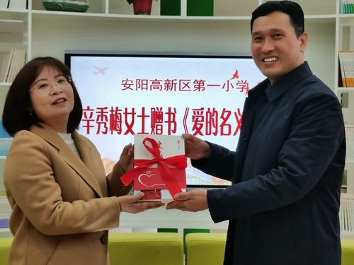 著名公益志愿者辛秀梅同志向高新区第一小学赠书时间:2022-03-31 3月30日,安阳高新区第一小学四楼博雅书廊内蓬荜生辉,著名公益志愿者辛秀梅女士向该校赠送《爱的名义》图书仪式在此隆重举行。 热烈的掌声中,辛老师将自己的著作《爱的名义》赠送到学校领导手中。随后,他们坐在一起,倾心交谈,交流爱心故事,传递温暖,播洒希望。纪实文学《爱的名义》记录了辛秀梅老师真情而朴实的温暖故事,蕴含人世间最真的美好,是一本难得的值得品读的佳作。辛老师捐赠的图书将作为学校珍贵藏书放在阅览室,供师生借阅。 “爱是有温度的,她可以温暖全世界”。赠书仪式在助力学校读书活动的同时,正能量满满,必将推动全社会向好向上氛围的快速形成。 |
