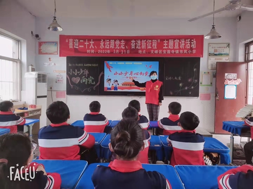 文峰区东风小学开展喜迎二十大系列宣讲活动时间:2022-03-31 为积极营造迎接党的二十大胜利召开的浓厚氛围,庆祝中国共产主义青年团成立 100 周年,3月31日,文峰区东风小学开展了“喜迎二十大、永远跟党走、奋进新征程”系列宣讲活动。东风小学44名少先队员参加了活动。 作为东风小学“喜迎二十大、永远跟党走、奋进新征程”系列宣讲活动的第一场,赵霜老师以“小小少年心向党”为主题与东风小学的少先队员代表进行了面对面、互动式现场宣讲,赵老师带领队员们了解红领巾的历史发展、重温红领巾的佩戴使用方法、合唱《我们是共产主义接班人》、交流怎样做一个全面发展的新时代好少年,为实现中华民族伟大复兴的中国梦贡献力量。 东风小学少工委表示,将持续开展好宣讲活动,引导全校少先队员进一步提高思想认识,掀起学习贯彻党史、团史、队史的高潮,推动学校少先队事业不断发展,为党的二十大的胜利召开、中国共产主义青年团成立 100 周年献礼。 |