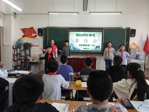 高新区第一小学开展清明节系列活动时间:2022-04-01 为激发学生对先贤的崇敬之情,缅怀革命先烈,弘扬爱国主义精神,4月1日,安阳高新区第一小学组织全体师生通过升旗仪式、主题队会、赛诗会、网上祭英烈等形式,开展了清明节系列活动。 当日上午10时20分,春阳融融,参加仪式的各中队代表列队完毕。在学生的注视下,英姿飒爽的国旗护卫队队员踏着铿锵有力的步伐,护送着鲜艳的五星红旗进场。伴随着雄壮的国歌声,国旗冉冉升起,飘扬在校园上空,与万里蓝天交相辉映,孕育出蓄势待发的力量。在场的每一名师生人向国旗行礼,深怀对祖国无限的热爱和对先贤先烈的无限追思。 队活动课上,各班利用统一制作的课件,温习清明文化。清明节的由来、各地的清明节习俗,有关清明节的传说、故事等环节逐一进行。跟随老师,大家重温清明知识,交流家风故事,收获满满。 阅读课上,各中队纷纷开展“清明赛诗会”。学生或吟诵高歌,或赛读浅唱,生动形象、充满活力的表达,使现场气氛热烈激昂。有的学生还对诗词进行改编,配以舞蹈,赢得了在场老师、学生的热烈掌声。 活动使学生受到了一次深刻的思想洗礼,增强了他们的历史使命感、责任感。他们纷纷表示,要继承革命先烈的遗志,珍惜来之不易的美好生活,勤奋学习,报效祖国。 |