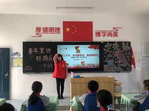 文峰区何官屯小学喜迎二十大主题宣讲活动时间:2022-04-01 为深入学习宣传贯彻习近平新时代中国特色社会主义思想,重温党的百年历程,引领广大少年儿童听党话、跟党走,以实际行动和优异成绩迎接党的二十大胜利召开,4月1日,文峰区何官屯小学举办了以“喜迎二十大、永远跟党走、奋进新征程”为主题的系列宣讲活动。 常冰青老师作为一名青年宣讲轻骑兵,作为一名大队辅导员,首先从队史出发,以《我骄傲,我是一名少先队员》为主题展开了第一场宣讲活动。从什么是少先队员导入,让学生更加深入了解少先队基本知识,引领学生们齐唱《我们是共产主义接班人》,让学生明白队歌的来历,队歌歌词虽然只有几句话,但其中充满了革命的哲理和教人成才的微言妙义,歌曲坚定、激昂,少先队员在唱歌的同时,更加应该深刻理解歌词的意义。之后由歌词的创作时代引入到少先队的五个发展历程,一代一代的少先队员,在党的关怀培养下,茁壮地成长。最后大家在《鸡毛信》这样一个讲述少年英雄海娃的故事中结束队史的讲解。 何官屯小学表示,将继续开展好“喜迎二十大、永远跟党走、奋进新征程”系列宣讲活动,为党的二十大的胜利召开、中国共产主义青年团成立 100 周年献礼。 |