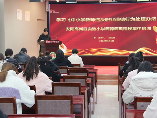 安阳高新区实验小学开展师德师风建设集中培训时间:2022-04-02 为深入贯彻落实习近平总书记关于教育的重要论述和全国、全省教育大会精神,加强和改进新时代师德师风建设,推进师德师风教育常态化和制度化,把师德师风教育摆在教师培养培训工作的首位,按照文峰区教育局安排部署,4月1日,安阳高新区实验小学对全体老师进行了师德师风建设集中培训。 该校党支部书记胡红芬带领全体教师学习了《中小学教师违反职业道德行为处理办法》。通过集中学习,老师们对违反教师职业道德处理的种类和权限、以及违反教师职业道德的行为及其适用的处理有了进一步的了解和明确,对自己的职业道德、教育教学行为有了更进一步的约束。大家表示,要在工作中严格遵守职业道德,结合学校的“争做四有好老师”活动,努力提高自身修养,做人民满意的教师。 集中学习之后,德育处布置全体教师继续加强自主学习,并认真完成学习摘抄、心得和师德师风承诺书三张手写卡,让师德师风建设切实落到实处。 |
