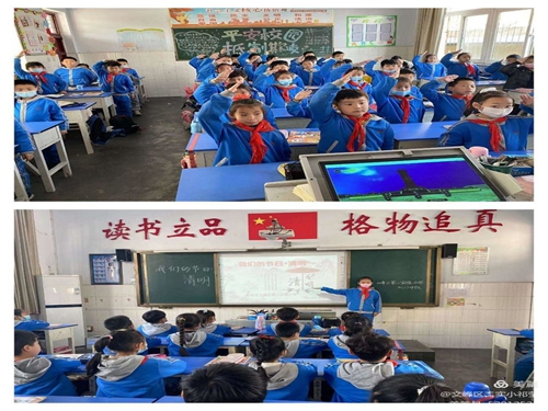 文峰区第二实验小学开展清明节主题活动时间:2022-04-02 为了缅怀革命先烈,弘扬爱国主义精神,加强队员爱国主义教育,促进校园精神文明建设,弘扬奉献精神,近日,文峰区第二实验小学组织开展了清明节主题教育系列活动。通过主题升旗仪式、网上祭英烈、召开主题班会等形式,在全校营造弘扬中华民族传统美德和爱国主义教育的氛围。 升旗仪式上,五二班全体队员进行了经典诵读,缅怀革命烈士,传承红色基因,引导学生缅怀先辈,珍惜幸福生活。王雅莹老师就清明节主题活动发表讲话,并对清明祭扫活动提出合理建议。 二年级全体队员们登录“网上祭英烈”专题网页,通过网上鞠躬、献鲜花、敬队礼,寄语留言,传达心声,寄托哀思,表达对先烈的感恩和敬仰。 队员们诵读清明节主题诗词,开展英雄我想对你说活动,从中感受了中华民族文化的魅力与丰富内涵,培养了队员们的爱国情怀。 本次主题系列教育活动的举行,激发了队员们对英烈的崇敬之情和深切缅怀。队员们纷纷表示:一定要以先辈为榜样,继承先烈遗志,发扬他们艰苦奋斗的革命精神,珍惜今天的幸福生活,加强思想道德实践,刻苦学习,立志争当勤奋上进、品德优良的新时代少年,为祖国的腾飞,为中华民族的伟大复兴时刻准备着。 |
