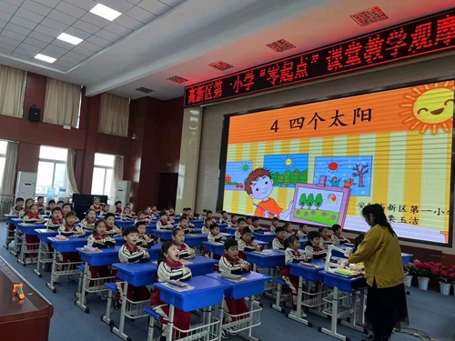 一年级语文教师栗玉洁执教的《四个太阳》一课,遵循学生的年段特点,在教学中通过多形式的朗读带领学生感受小男孩的美好心愿。同时,采用了随文识字的方法,追溯字源、联系生活,激发了学生对汉字文化的热爱。整节课,学生轻松愉悦地读书识字、积累语言,涵养习惯,呈现出了“零起点”课堂风采。