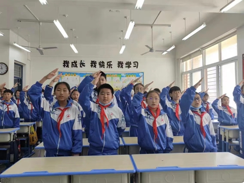 少先队员们穿戴整齐,佩戴红领巾,全体起立,高唱国歌,向冉冉升起的五星红旗敬队礼。
