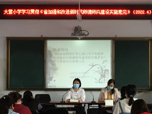 安阳市大营小学组织教师开展师德师风专题学习活动时间:2022-04-13 为全面贯彻落实《中共河南省委河南省人民政府关于全面深化新时代教师队伍建设改革的实施意见》,进一步提升教师队伍思想政治素质和职业道德水平,切实加强教师队伍师德师风建设,引导全体教职工严守师德规范,弘扬高尚师德,提高师德素养,4月11日,安阳市大营小学组织全体教职员工开展了师德师风专题学习。 袁利娟校长带领教师学习贯彻部署《中共河南省委河南省人民政府关于全面深化新时代教师队伍建设改革的实施意见》,重点讲了《河南省实施中小学教师违反职业道德行为处理办法》,指出全体教职工要深刻认识自身工作的重要性,以高度的责任感使命感去加强自身师德修养;要求大家会后进一步认真学习文件精神,规范从教行为,坚决不触师德底线,以优秀的师德形象影响带动每一位学生健康茁壮成长。学习过程中大家及时摘要记录,及时查找自身存在的师德师风问题并进行深刻的反思。 学习结束后,全体教师认真写下师德师风承诺书和师德师风学习心得,并纷纷表示,在今后的工作中,要立足本职岗位,践行师德规范,树立良好师风,提高专业技能,做新时代的合格教师,为教育事业的发展做出自己应有的贡献。 |