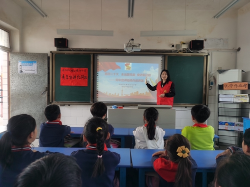 安阳市东门小学青年宣讲轻骑兵喜迎二十大主题系列宣讲活动时间:2022-04-14 为深入开展“喜迎二十大、永远跟党走、奋进新征程”主题教育实践活动,引导广大少先队员厚植爱党、爱国、爱社会主义的情感,让红色基因、革命薪火代代传承,4月13日,安阳市东门小学青年宣讲轻骑兵何妍老师走进中队进行了主题宣讲活动。 何妍老师以《经典红色英雄故事》为主题,向队员们讲解了《抗日小英雄——郑振华》的故事,介绍了中国共产党艰难的成长史,在队员们心中厚植爱党、爱国、爱社会主义的情感。以英雄模范人物为榜样,教育学生从小坚定听党话、跟党走的决心,刻苦学习,树立理想,砥砺品格,增长本领,努力实现德智体美劳全面发展。 安阳市东门小学少工委表示,将持续开展好宣讲活动,推动学校少先队事业不断发展,为党的二十大的胜利召开和中国共产主义青年团成立 100 周年献礼。 |