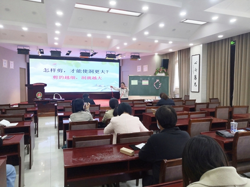 高新区实验小学数学微型课展示活动时间:2022-04-20 为提高教师课堂教学水平、提升教师的专业技能、促进教师专业发展,4月19日,安阳高新区实验小学举行了数学微型课展示活动。本次活动以“综合实践”为主题,共展示了五节课。 一年级李明姣老师带来的《摆一摆 想一想》主要通过让学生摆圆片发现规律,充分利用儿童喜好动手玩的心理,让学生从玩中学、学中悟。二年级李瑞菊老师带来的《小小设计师》一课,让学生利用数学中的旋转平移等图形变换方式自己设计美丽花纹,感受几何数学之美。三年级李曼老师的《制作活动日历》,在学生充分掌握了有关年、月、日的知识基础上引导学生动手制作日历,让学生感受数学的实际作用,体会有价值的数学。 四年级王秀萍老师的《营养午餐》这节课,通过了解饭菜中的营养成分含量和营养午餐的基本指标,增强了学生在生活中应用数学的意识,同时促使学生养成科学的饮食习惯。六年级的《纸上剪洞》是个有趣的数学游戏,李玲老师结合魔术手法展现了如何用一张纸剪出能钻过两个学生的大洞,引导学生挑战不可能,探索出剪大洞的方法与技巧,感受数学的奥秘,激发学生学习数学的兴趣。 这五节展示课,课课有亮点,展现了老师们扎实的教学基本功,真正做到了场上无学生,心中有学生。本次活动,让高新实小的数学老师们对如何上好一堂微型课有了更深刻了解,对学科教学活动有了更加清晰的认识和方向,为教师们搭建了一个锻炼自己、展示、交流、学习的平台,让老师们取长补短,让老师的专业素养得以落地生花。 |