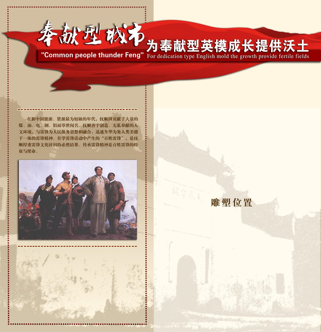 1-1-1 图片 《毛主席视察抚顺》做背景。前置雷锋当选抚顺人大代表雕塑。