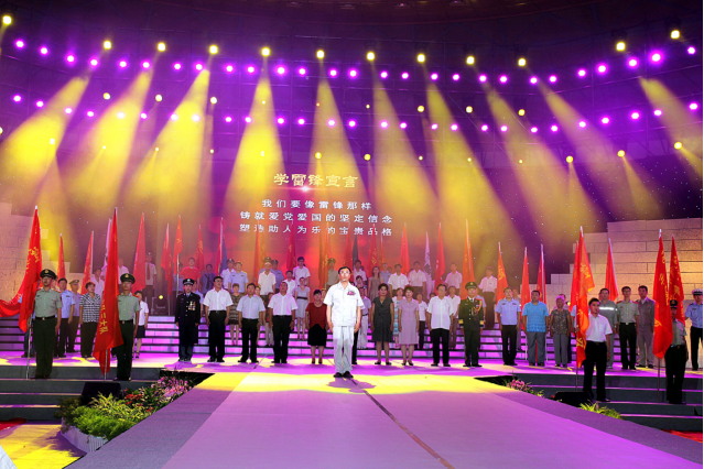 顶部:缀满红星。象征百姓雷锋是社会主义核心价值天空的群星。
