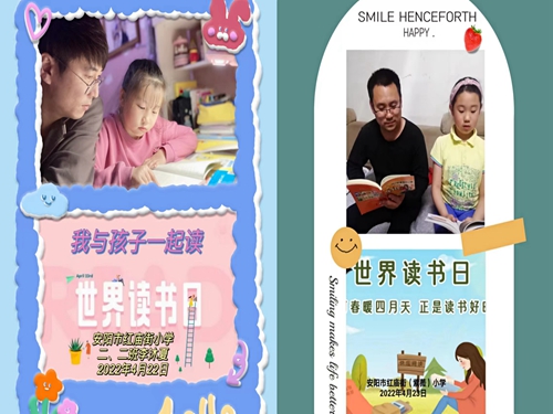 4月23日,安阳市红庙街小学二年级组开展“世界读书日,亲子共读”活动,家长与孩子共度“悦读”时光。