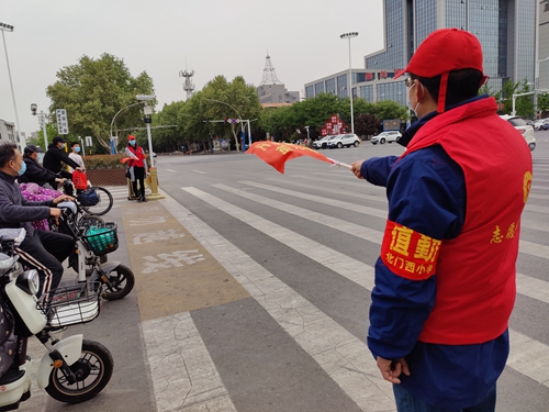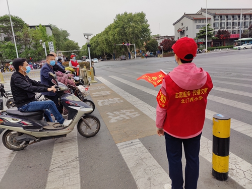 为了维护交通秩序、发扬志愿者奉献、友爱、互助、进步的精神,4月22日,安阳市北门西小学在东风路与文峰大道交叉口开展文明交通志愿者活动。