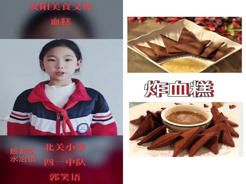 殷都区水冶镇北关小学开展社会综合实践活动时间:2022-04-28 4月28日,殷都区水冶镇北关小学开展了“安阳美食我来讲”社会综合实践活动。四年级四个中队的学生参加了本次活动。 学生搜集、学习相关内容,许多学生疫情在家恰有父母指导,就上手了扁粉菜、水冶烩菜等,一道道特色美食新鲜出炉。除此以外,传统名菜道口烧鸡;豫北之花老庙牛肉;安阳三宝——粉浆饭、血糕、皮渣;炒三不沾等,从由来到做法,从特点到排行,学生娓娓道来,俨然成了一位位美食专家。 本次实践活动,学生学会了用查阅、整理的方法丰富知识,并最终写出自己的演讲稿件,大大方方用录制视频的方式,凭借抖音、快手等平台介绍安阳特色美食。学生引以为傲的“舌尖上的安阳”必将点亮他们热爱家乡的长情。 |